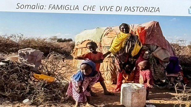 La dottoressa Naima Abdulkadir Hassan medico del coordinamento screening oncologico e dell’ambulatorio stranieri della Asl di Viterbo presenta una situazione drammatica: il 30 % della popolazione sud sahariana, pari a un terzo della popolazione mondiale, non ha ancora accesso all’acqua potabile. I bambini, spesso con i fratellini più piccoli sulle spalle, impiegano anche alcuni giorni per portare acqua a casa, famiglie intere che vivono di pastorizia, sono costrette a spostarsi per inseguire una nuvola che promette pioggia..