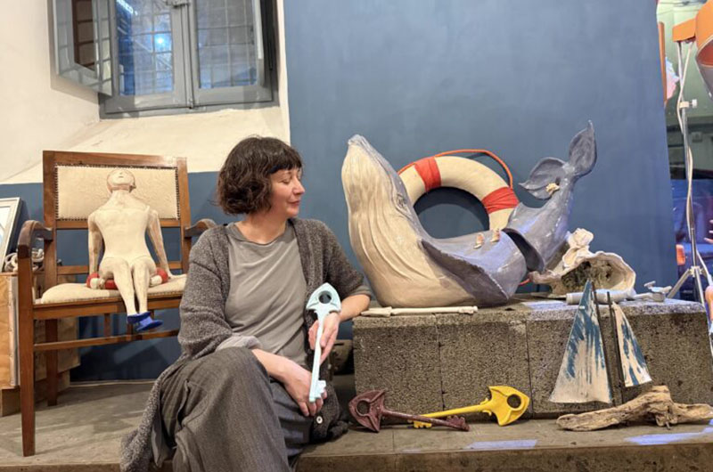A Viterbo, in un centro storico ormai ingrigito e senza più grandi slanci, resistono piccole luci ostinate che brillano, malgrado tutto, illuminando il cammino che potrebbe portare alla sua rinascita. Una si trova in una traversa di corso Italia, largo Cesare Battisti, al civico 3: in un palazzo storico, severo, ingentilito sul muro da un benvenuto di stelle e ballerine, ad anticipare la valanga di colore all’interno. Siamo nell’Atelier di Elena Urbani, “Motivi Urbani” appunto, e stiamo per immergerci in un’esperienza quasi onirica. L’ambiente è accogliente, caldo: le sue sculture in ceramica sono tenere, commoventi, leggiadre: busti di donna, animali e frutta, piatti, fiori stilizzati, sembrano tutti usciti direttamente da un mondo altro, tra sogno e materia, tra riflessione e sorriso.