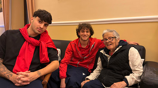 La delegazione rossoblù è stata accolta con partecipazione dagli ospiti della Residenza, coinvolti in attività leggere, balli spontanei e scambi di racconti che hanno restituito un ambiente autentico, fatto di ascolto e interazione. Il pomeriggio si è chiuso con una torta preparata per l’occasione, gesto semplice ma capace di suggellare il clima creatosi.