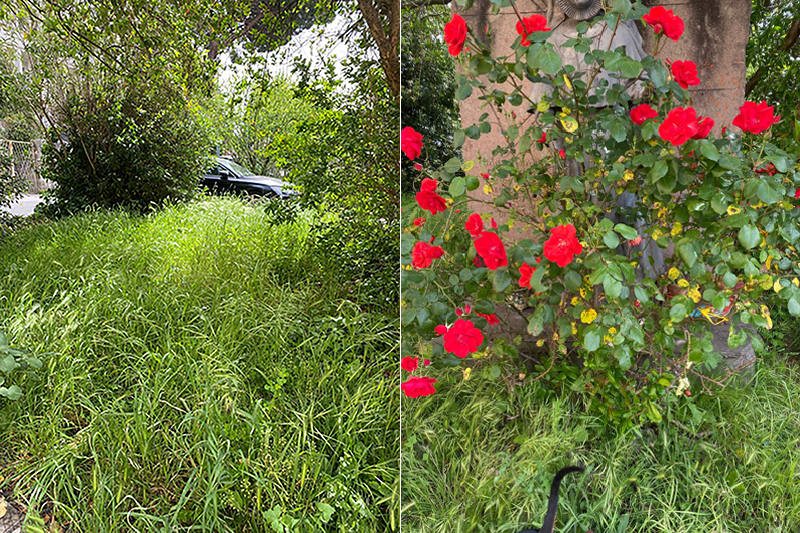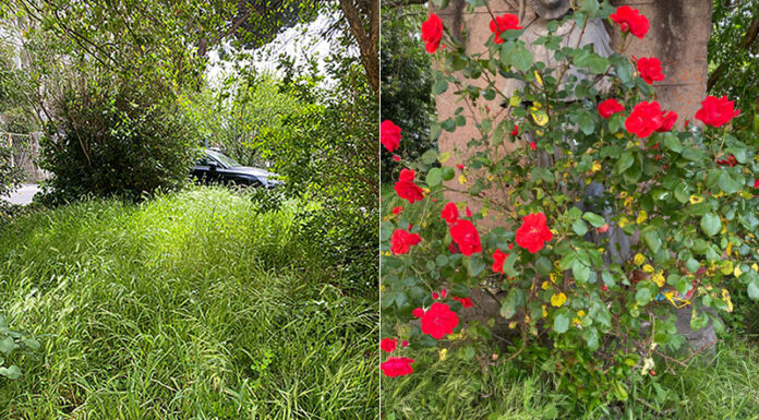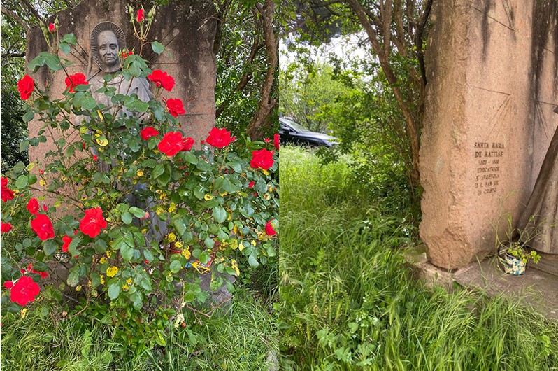 La statua di Santa Maria De Mattias, la fondatrice della Congregazione delle Suore Adoratrici del Preziosissimo Sangue sommersa di sterpaglie