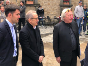 Ad accogliere Steven Holl il vicesindaco Luca Profili, che lo ha accompagnato in questa giornata bagnorese. L’archistar ha scoperto, al belvedere del versante nord, il drappo rosso che copriva la stampa del suo progetto e l’ha illustrato ai presenti.