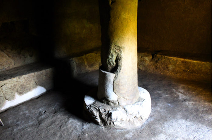 La tomba è costituita da un unico ambiente rettangolare dotato di una banchina continua su tre pareti, soffitto a doppio spiovente e trave centrale a rilievo sostenuto, al centro, da una doppia mensola che poggia su una colonna di ordine tuscanico: la colonna che ha dato il nome alla tomba.