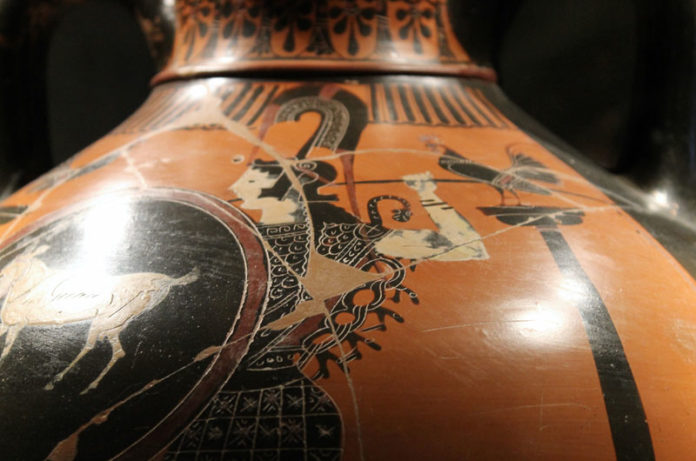 Le grandi anfore erano prodotte proprio per contenere il premio per i vincitori. Sul lato principale di questi vasi, decorati solo a figure nere, compare sempre Atena, armata di elmo, lancia e scudo, fra due colonnette doriche sormontate da galli. Sull’altro lato è invece raffigurata la disciplina per la quale l’anfora era stata assegnata in premio.