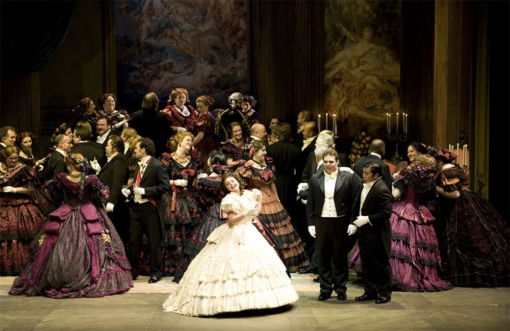 Dopo aver visto a teatro “La signora delle camelie” a Parigi, accompagnato da Giuseppina Strepponi, nel febbraio del 1852,Verdi elabora questo dramma, opera di Dumas figlio, e ne ricava un intenso melodramma dal valore emotivo e di un esasperato romanticismo. È la storia della difficile e infelice storia d’amore tra Margherita, la cortigiana più bella di Parigi, e Armando Duval. Margherita Gautier veniva chiamata La signora delle camelie, perché tutti i giorni portava in mano un mazzo di camelie bianche, tranne cinque giorni al mese che le porta rosse. È protetta da un duca, che le manda denaro per soddisfare ogni suo capriccio. Margherita non si sente degna di Armando e soffre la distanza morale e sociale che li separa. Dall’inizio della storia d’amore si passa velocemente a una sua prima drammatica conclusione. Giorgio Germont, padre di Alfredo, incontrando Violetta fa leva sui suoi sensi di colpa, la costringe ad abbandonare suo figlio. La società è molto chiara a riguardo: chi osa unirsi pubblicamente a una donna come lei in una relazione seria e non come amante di una notte, avrà tutta la famiglia marchiata dal disonore, e Violetta queste cose le sa. Dirà quindi andando via, ad un Alfredo del tutto ignaro e incapace di comprendere, «Amami, Alfredo, quant’io t’amo. Addio». Queste parole esprimono appieno la felicità fugace e l’amore traumaticamente spezzato, nel momento in cui sembrava aver trovato il proprio coronamento.”