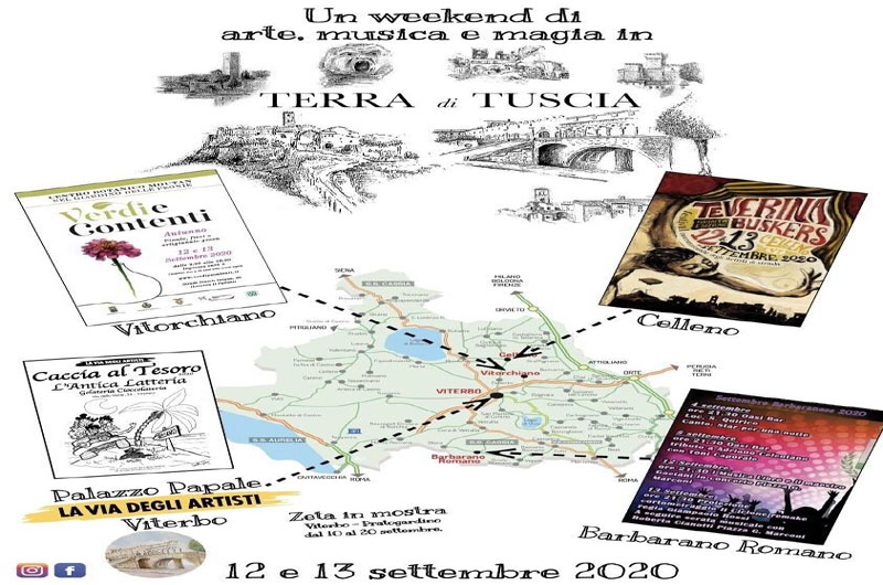 Il fine settimana del 12 e 13 settembre sarà ricchissimo per la Tuscia. Tante offerte per chi vive in zona o chi arriva da lontano: Arte, natura, creatività e tanto tanto talento in campo. Verdi e contenti a Vitorchiano, Teverina Buskers a Celleno, Musica Libre ed il maestro R. Di Gaetani a Barbarano Romano e l’arte nel capoluogo al cospetto del meraviglioso palazzo dei Papi.