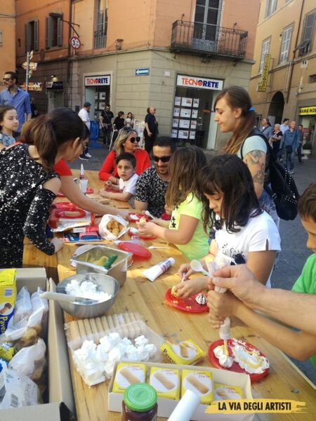 Questo ultimo fine settimana ci ha consegnato una Viterbo viva, ricca di colori, suoni e magia un cocktail perfetto nelle strette vie del centro. Break dance, organetti, coro del Buratti, coro ukraino, archi e fiati del liceo Santa rosa, gospel ma soprattutto tanti tanti artisti, giovanissimi come i tanti dell’Orioli, i quasi professionisti della scuola Sabrina Pittura e tanti tanti da tutta la Tuscia, artigiani o creatori dell’arte fatta con le proprie mani, come la magia della lana di Pianoscarano. Promozione territoriale da Celleno, Vignanello, Bomarzo e Vetralla. Per i più piccoli “dolce fai da te”, la via a colori con i gessetti, trucca bimbi e ben 57 creazioni in argilla sotto la guida del maestro Checco Lallo, ultimo discendente della dinastia dei pignattari di Vetralla con ben due torni a piazza Fani. La meraviglia degli Arcani di Faul, i Tarocchi di Cinzia Chiulli ha trasformato la sala Anselmi in una galleria Esoterica con tanto di lettura dei tarocchi live dalla fattucchiera Mirella, apprezzatissima ed impegnata fino oltre la mezzanotte.