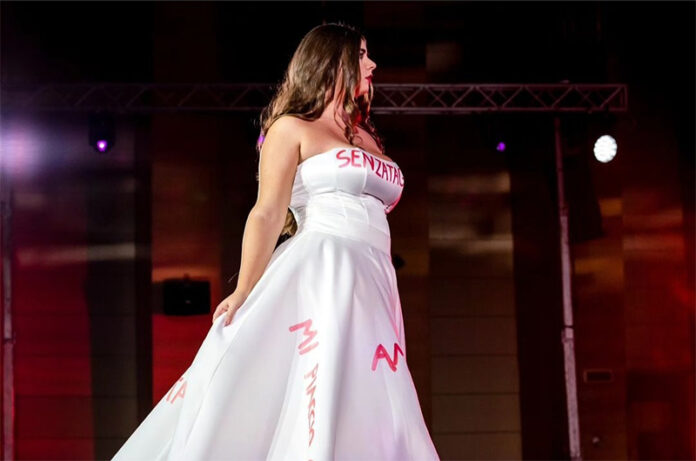 A fine sfilata, la modella curvy viterbese Claudia Cristofari è divenuta testimonial di un messaggio importante, portando in passerella un abito ispirazionale, dipinto con slogan come “non mi accontento”, “la mia taglia non è un limite”, “sono unica”, per incoraggiare le ragazze ad auto accettarsi e valorizzare i loro corpi.