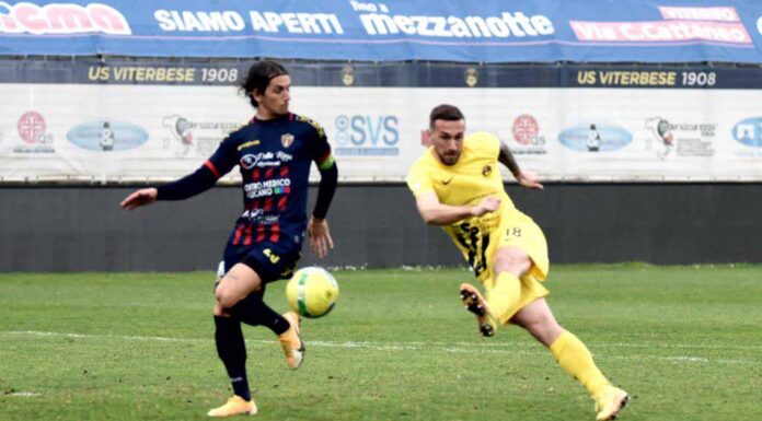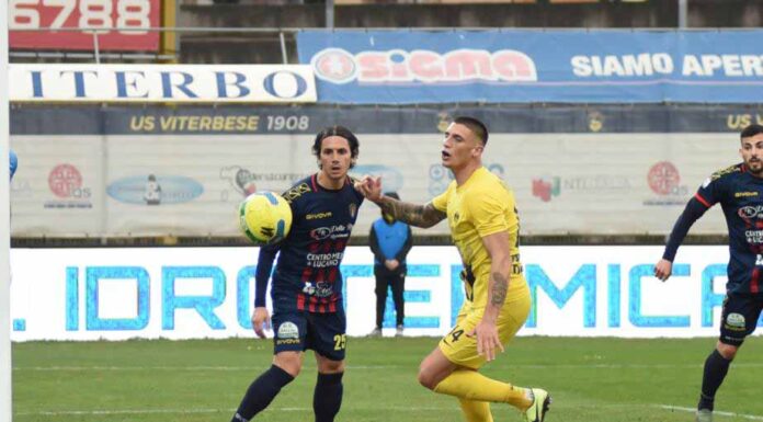 VITERBESE: Bisogno; Riggio, Ricci, Monteagudo; Mastropietro, Mungo (40’st Mbaye), Megelaitis, Barillà (21’st Nesta), Devetak; Jallow (14’st Polidori), Marotta (40’st D’Uffizi). A disposizione: Dekic, Rabiu, Marenco, Ingegneri, Montaperto. All. Lopez
