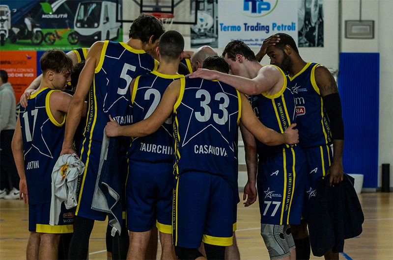 Con un’ottima prestazione, fatta di attenzione e concentrazione per tutta la gara, la WeCOM-Ortoeturia sbanca il parquet di Grottaferrata, team dal roster collaudatissimo e di sicura qualità, riaggancia la Carver al quinto posto e mette in carniere due punti molto pesanti per i propri obiettivi stagionali. La squadra di coach Fanciullo conduce la gara praticamente dalla palla a due e riesce a respingere i tentativi dei criptensi che provano a riagganciare gli ospiti giocando una buonissima seconda frazione, ma la Stella risponde con incisività ad ogni tentativo di rientro degli uomini di Busti opponendo una buona difesa, ma soprattutto trame di attacco ben orchestrate ed altrettanto efficacemente concluse.
