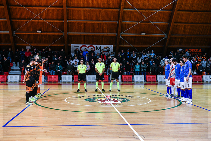 La gara sin dalle prime battute si gioca su ritmi altissimi e dopo un doppio intervento di Molitierno su Igor e Oitomeia, i viterbesi passano al minuto 4’48’’. Dudù perde malamente un pallone sulla propria trequarti, ne approfitta Igor che non lascia scampo a Molitierno. La risposta del Pomezia non si fa attendere, ma né Yeray né Micheletto riescono a superare Thiago Perez. Alla metà della prima frazione il Pomezia va vicinissimo al pareggio, ma Gattarelli da due passi manda clamorosamente fuori a Thiago Perez battuto. Sul capovolgimento di fronte, lo scatenato Igor impegna Molitierno, poi ci prova capitan Curri a trovare la via del 2 a 0, ma l’estremo difensore ospite è attento. Al minuto 15’25’’ arriva il meritato pareggio della Fortitudo Pomezia. Schema da calcio d’angolo e il rasoterra di Micheletto fulmina Thiago Perez. Ma è un fuoco di paglia, perché appena 17’’ dopo l’Active Network si riporta avanti con Oitomeia. Prima del riposo arriva anche il tris di Riccardo Berti che supera Molitierno dopo un altro errore difensivo dei pometini.