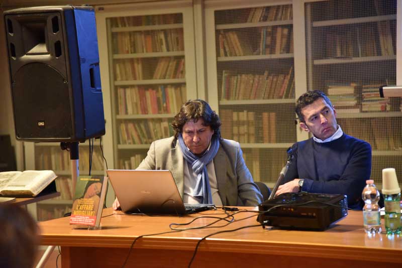 La presentazione dell’Affare Modigliani, oltre alla presenza degli autori, ha visto come moderatore il giornalista Giorgio Renzetti e l’intervento del procuratore Pacifici, che ha ripercorso i momenti di un’inchiesta, quella di Viterbo, che poi è passata di mano al Tribunale di Roma, al precipitare dei fatti Viterbo era ritenuta una cittadina fuori dal grande circuito. Sara Grassotti ha letto alcuni brani del libro a riallacciare gli interventi che si sono susseguiti.