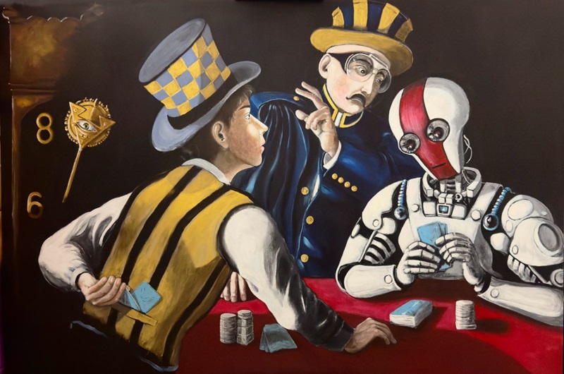 Spina.Police interverrà a partire dalle 14,30, con la sua installazione “Ex Machina – Chapter II”, un’opera totale di wagneriana memoria, composta da un dipinto che prende vita in un cortometraggio, ideato, diretto e musicato dallo stesso artista interdisciplinare.