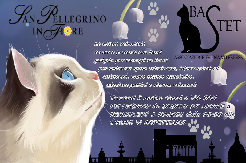 Da quattro anni a questa parte, la Bastet rinnova il suo appuntamento con gli amici dei gatti partecipando alla nuova edizione di “San Pellegrino in Fiore” 2019.