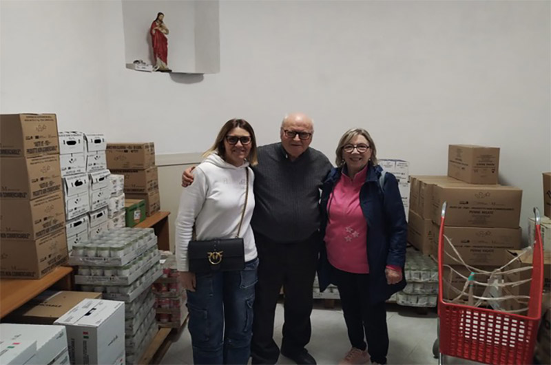In vista delle prossime festività pasquali, l’associazione ha donato alla Caritas una buona quantità di beni che servono alle tante famiglie aiutate costantemente dalla parrocchia. Stavolta sono stati portati olio extravergine di oliva, pacchi di riso, confezioni di ceci, fagioli, zucchero e altri beni alimentari di prima necessità.