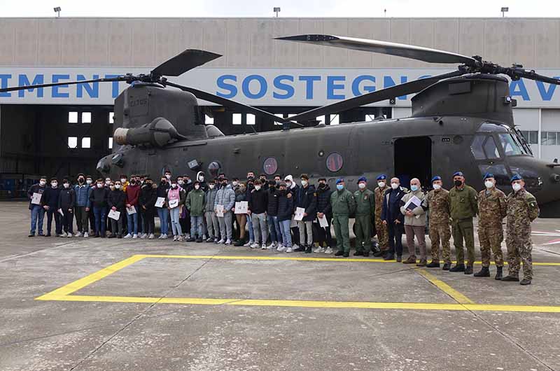 “Quando si entra nell’ hangar di manutenzione degli elicotteri CH-47 del 4° Scorpione AVES di Viterbo, l’emozione ti avvolge e tutto sembra un sogno”. Questa è stata l’impressione di uno degli studenti delle classi di Costruzioni Aeronautiche che hanno svolto le due settimane di formazione pratica “PCTO” (Percorsi per le Competenze Trasversali e Orientamento) o Alternanza Scuola Lavoro, presso il 4° Gruppo Squadroni Sostegno Aviazione dell’Esercito (AVES), centro di eccellenza dell’Esercito per la manutenzione di 2° livello degli elicotteri CH-47F.