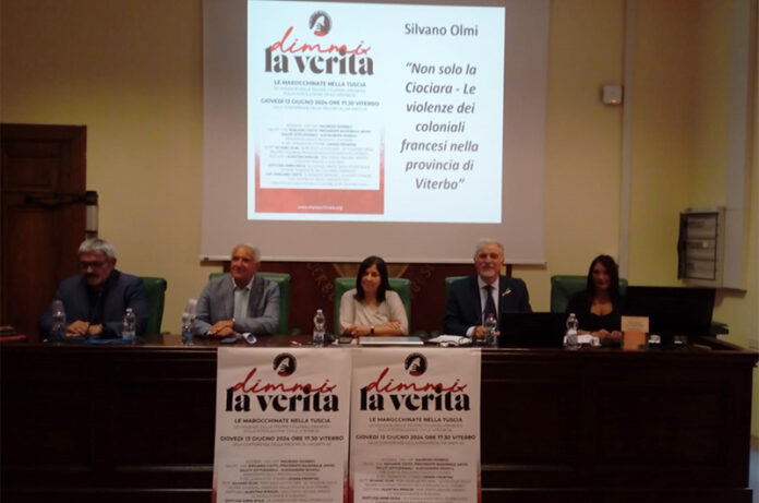 Successo per la conferenza svoltasi ieri pomeriggio nella sala riunioni messa a disposizione dall’amministrazione provinciale di Viterbo. Sala affollata e un pubblico attento per la riunione nella quale sono state rievocate le cosiddette marocchinate, cioè le violenze compiute 80 anni fa dai coloniali francesi nella Tuscia.