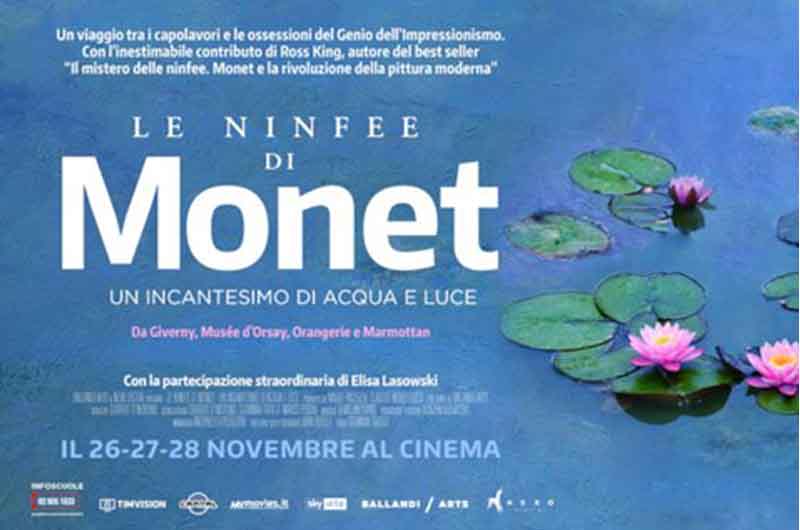 In anteprima esclusiva al Cinema Le Ninfee di Monet. Una storia che nasce in un giardino.Uscirà al cinema il prossimo 26 novembre. A guidare gli spettatori alla scoperta dei luoghi, delle opere e delle vicende del maestro Claude Monet, il padre dell’Impressionismo, ci sarà Elisa Lasowski (Trono di Spade e Versailles), mentre la consulenza scientifica sarà affidata allo storico e scrittore Ross King, autore del best seller Il mistero delle ninfee. Monet e la rivoluzione della pittura moderna, edito in Italia da Rizzoli. Tra gli altri interventi preziosi che getteranno nuova luce sulla figura di Monet e del suo lavoro anche quello della fotografa fiamminga Sanne De Wilde e quello della giardiniera della Fondation Monet, Claire Hélène Marron. La colonna sonora originale del film è firmata da Remo Anzovino.