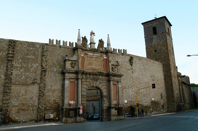 L’accesso cittadino da e per Roma insiste su un tratto delle mura urbiche che già in età medievale presentava, più in prossimità di San Sisto, un fornice assimilabile a un passaggio voltato in coincidenza della torre campanaria della chiesa.