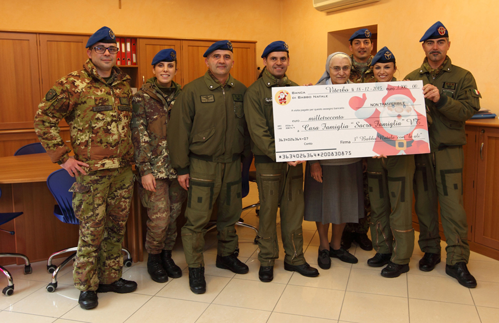 Nella giornata di oggi 10 marzo l’Esercito ha donato un sorriso alla casa famiglia di Viterbo “Sacra Famiglia”. I militari dell’Aviazione dell’Esercito hanno infatti consegnato ai responsabili del centro i proventi di una raccolta fondi che si è svolta lo scorso dicembre.
