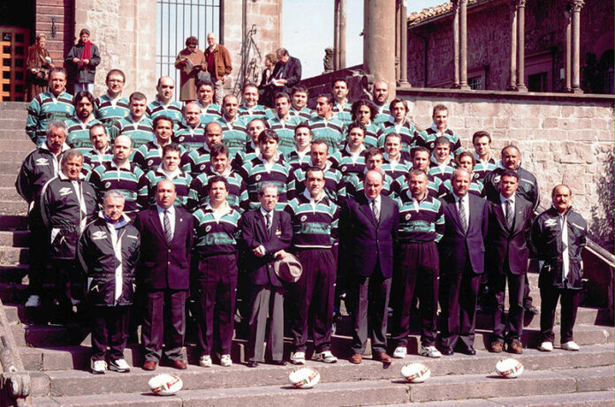 C’era il “rugby green”, il vivaio nato nell’86, e c’era il tocco di Franco Ascantini. Un uomo fatto di pane, mischie e saggezza, uno che aveva respirato l’aria della nazionale accanto a un santone come Pierre Villepreux. Ascantini trovò il suo alter ego in Ruggero Grassotti, allenatore e giocatore di un gruppo che era un mosaico di anime. Tutti viterbesi, gente di terra e di radici, con l’aggiunta di tre innesti romani – Bernardi, Ancellotti, Cesaroni – a dare il sale, l’equilibrio, la malizia necessaria.
