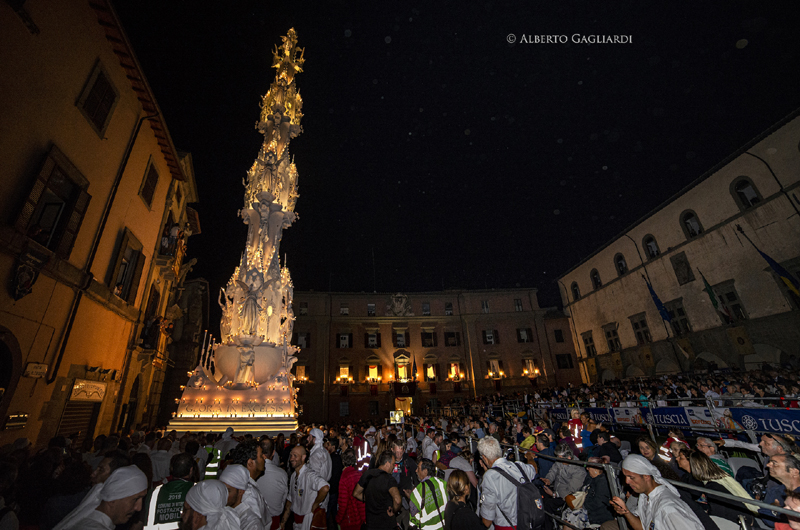 Il trasporto della macchina l’ho visto solo una volta in 20 anni che vivo a Viterbo: Fiore del Cielo nel 2014 in via Marconi (unica ed esclusiva occasione in cui il trasporto è avvenuto anche in quella via). Quella sera ero a casa da sola e il mio amico Mauro mi chiamò e mi disse: ‘C’è posto in via Marconi, vieni?’ Risposi vaga, sminuendo la cosa, ricordandogli quanto non mi importasse ‘di questa pacchianata’. Lui non si offese e mi disse: ‘Noi siamo qui’.