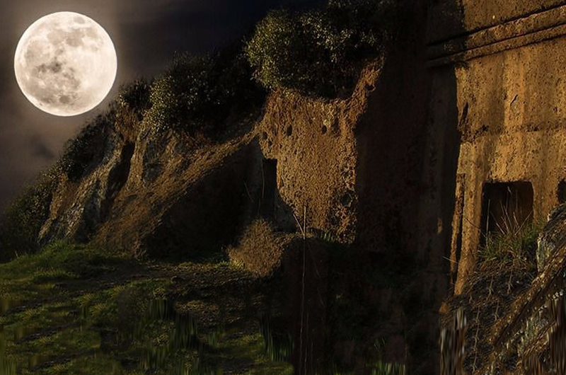 Al calar del sole, oltrepasseremo la porta dell’antico borgo di Blera, lasciando con essa ogni tipo di protezione e contatto con la realtà. Man mano le luci dell’abitato si affievoliranno e scenderemo proprio nella parte più profonda, cuore della forra. Questo luogo, intriso di antiche vestigia e ombre del passato, sarà una sorta di introduzione al nostro percorso.