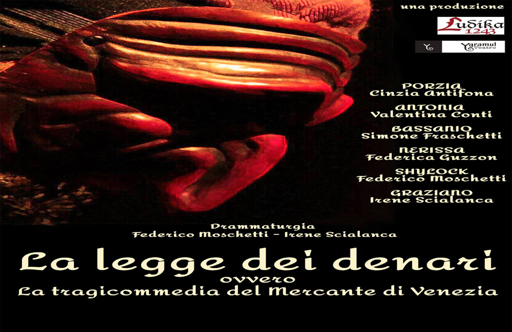 Al Chiostro di Santa Maria nuova va in scena la tragedia shakespeariana dell’usuraio Shylock e del mercante Antonio rivive nelle forme e nelle maschere della Commedia dell’Arte, fonte e ispirazione dei personaggi e delle storie dell’autore inglese per eccellenza. Un ritorno alle origini che ritrova, nella tragedia, gli “originali” grotteschi e tragicomici dei caratteri, mettendo la storia in una luce nuova e insolita, anche per il ruolo che le figure femminili hanno all’interno della vicenda; uno Shylock-Pantalone e un Bassanio-Capitano agiscono nella Venezia della piazza e della Commedia, fondendo l’immagine letteraria del Bardo con quella popolare della tradizione delle maschere, calando la tragedia completamente nei meccanismi e nelle modalità della Commedia dell’Arte classica, fra lazzi, maschere e danze.Drammaturgia: Federico Moschetti, Irene Scialanca