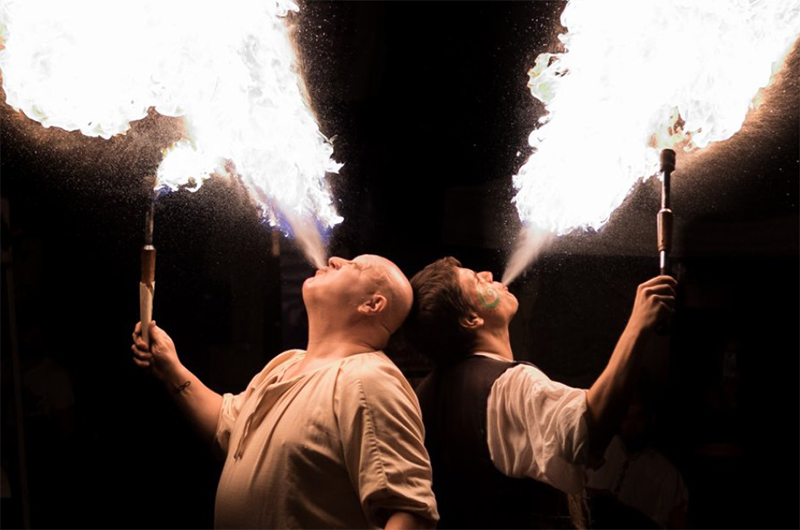 Il quartier generale in piazza San Carluccio accoglie tutti con i colori del mercatino, mentre nel cortile si gioca con l’Archery Tag e alla Zaffera sbocciano spettacoli e commedie, anche con attori davvero “in erba”. Verso piazza san Pellegrino si viene accolti dalla cartomante mentre Palazzo degli Alessandri apre le sue porte al gioco da tavolo e al collezionismo di carte, aprendo le sue segrete nella particolare Escape Room tutta storia ed enigmi. In piazza si combatte già incuriosendo chi vorrà addestrarsi per partecipare in prima persona alla Grande Battaglia Campale, in programma domenica a Valle Faul, dove l’unico dubbio da sciogliere è decidere se arruolarsi con i Guelfi o i Ghibellini. Via San Pellegrino accoglie i giochi in legno, che vengono subito conquistati da ragazzi e famiglie, incuriositi nel passare qualche attimo confrontandosi con oggetti così lontani dai nostri tempi. E infine gli artisti di strada, gli spettacoli del Festival della commedia dell’Arte “Come d’Arte”, al Chiostro longobardo, e gli acrobati in piazza del Gesù.