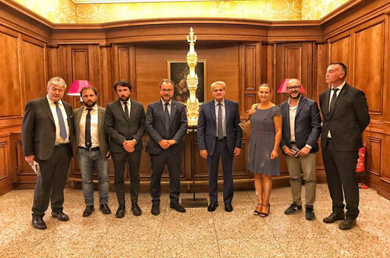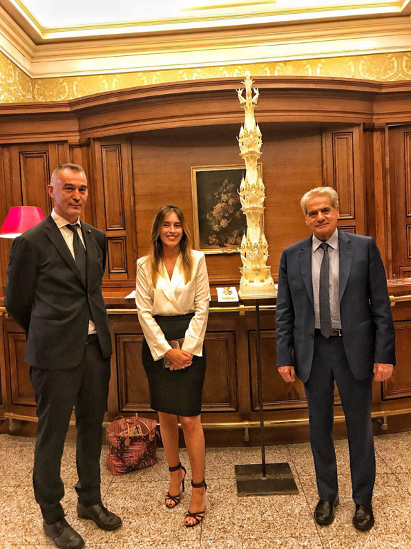 La Macchina di Santa Rosa si presenta al Parlamento.Il 1 agosto mattina una vetrina d’eccezione per Gloria e la secolare tradizione legata a Santa Rosa, dal 2013 patrimonio immateriale dell’umanità con la Rete delle grandi macchine a spalla. L’onorevole Mauro Rotelli con l’assessore ai grandi eventi Marco De Carolis insieme al sindaco Giovanni Maria Arena hanno presentato a parlamentari, ministri e sottosegretari la Macchina di Santa Rosa. Per l’occasione, è stato posizionato il bozzetto della Macchina dedicata alla patrona viterbese nella sala della Camera dei Deputati, in piena seduta d’aula. Presenti anche i senatori Francesco Battistoni e Umberto Fusco, Raffaele Ascenzi, ideatore di Gloria, la Macchina che sfilerà per la quarta volta il prossimo 3 settembre e il costruttore Mirko Fiorillo.