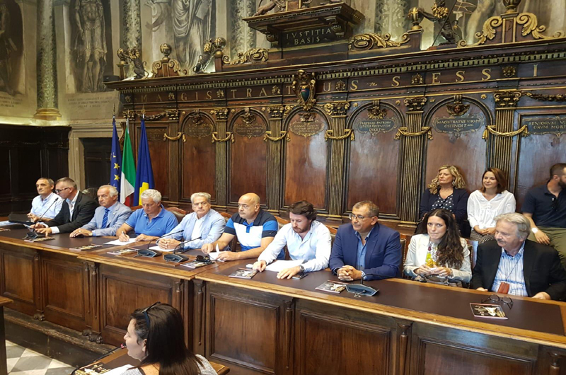 Un parterre d’eccezione, come eccezionale per Viterbo e la Tuscia è il trasporto della Macchina di Santa Rosa. Per la presentazione ufficiale la sala consiliare di palazzo dei Priori è gremita. Anzi, di più. C’è ovviamente il sindaco della città Giovanni Arena, c’è il presidente della Provincia Pietro Nocchi. La giunta comunale schierata quasi al completo. E poi il numero uno del sodalizio Massimo Mecarini, il capo dei facchini Sandro Rossi. L’ideatore della Macchina Raffaele Ascenzi, il costruttore Vincenzo Fiorillo. Il vicario del Vescovo don Luigi Fabbri. Del resto il passaggio della pulzella di Viterbo è, senza ombra di dubbio, l’avvenimento principe per il capoluogo. Parole, talvolta di circostanza, accompagnate da un lungo elenco di iniziative che per tre giorni faranno battere forte il cuore della città. Appuntamenti già schedulati, uniti comunque ad alcune interessanti innovazioni, a cominciare dalle piazze che saranno completamente libere, dal divieto assoluto di bagnarsi nelle fontane, dal raduno dei facchini fissato per le 13,30 del 3 settembre al teatro dell’Unione, dall’aumentato numero delle “girate” per ricordare i 650 giovani viterbesi morti sui fronti della Prima Guerra Mondiale, i facchini scomparsi recentemente e le vittime del disastro di Genova. Il percorso tornerà quello tradizionale, eliminando l’allungamento a via Marconi. Cene (si comincia la sera del 28 agosto), spettacoli di sbandieratori, musica. Persino il “regalo” di una scultura rappresentante una giovanissima Santa Rosa che l’artista, Elisa Morucci, ha donato al termine della conferenza stampa e che sarà ospitata nei locali del sodalizio. Per le festività sarà riaperto il dormitorio diocesano, nel segno – come ha sottolineato don Fabbri – della “solidarietà, del dialogo, dell’incontro”. Per domenica 2 settembre è fissato il corteo storico al quale parteciperà una delegazione della Chiesa Copto Ortodossa d’Egitto. Lunedì 3, l’atteso trasporto con l’arrivo della fiaccola che quest’anno partirà da Arezzo. Il 4 i festeggiamenti in onore della pulzella. E veniamo ai dati tecnici. La diretta (inizio ore 20,45) andrà in onda sull’emittente nazionale Padre Pio Tv canale 145 del digitale, sul canale 445 di TivuSat e sull’852 di Sky. Sarà visibile inoltre: in diretta su Facebook, pagina Visit Viterbo (con sottotitoli per non udenti); in diretta su You bTube, canale del Comune di Viterbo. In diretta streaming sul canale Yhou Tube sarà trasmessa in contemporanea anche sul sito del Corriere della Sera, Corriere Tv. E ancora in diretta, su Videonola canele 88 del digitale Campania; GigliTv canale 623 Campania e TS 2000 canale 172. Funzioneranno anche quattro maxischermi: in piazza del Plebiscito, piazza Verdi, largo Facchini di Santa Rosa (basilica) e piazza dei Caduti (davanti alla ex chiesa degli Almadiani).