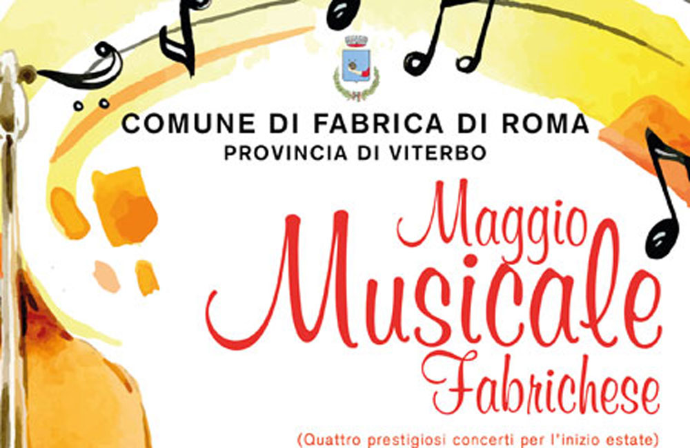 Proprio per questo Fabrica e la sua Amministrazione, guidata dal Sindaco Mario Scarnati e per la cultura dall’Ass. Marcelli Giampiero, hanno confezionato una rassegna prestigiosa e che rafforza il binomio Fabrica-Musica. Per quattro settimane, da sabato 13 Maggio e fino a venerdì 2 di Giugno si alterneranno sulla