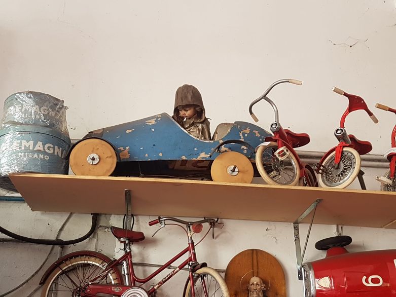 Il tour, a tappe, all’interno di una solo apparentemente banale officina e di stanze protette dalla penombra e profumate di umido, è un viaggio fantastico sulle tracce del vintage: dalla bambolina di pezza anni Trenta alla arrogante Lancia Ardea degli anni Cinquanta. Tutti pezzi, piccoli e grandi, umili e superbi, che i fratelli Lupattelli (Marco e Paolo) hanno messo insieme, spinti da una passione che evidentemente ha tracimato nell’amore. Un patrimonio di “gioielli” d’altri tempi che non ha nulla di ostentato. Prova ne sia che il locale che gestiscono in via Pietro Vanni, a Viterbo, non sapresti definirlo una carrozzeria o una officina meccanica, perché in effetti si avvicina di più a un emporio di cose di una volta, dove la vettura in riparazione magari affianca una macchina d’epoca che, a sua volta, staziona sotto una fila di impolverate automobiline Giordani. Queste ultime, allineate o agganciate lungo le pareti. Sotto, in un angolo, un giradischi che cerca ancora le sue puntine prima di riprendere a diffondere la propria voce. E poi radio e ancora radio, in legno pregiato e rigorosamente a valvole. Cartelli pubblicitari dell’Alfa Romeo, della Veedol, della Moto Guzzi con la tradizionale aquila ad ali spiegate. Appena fuori il locale una Fiat 850/Spider, una vecchia Chrysler Touring in attesa di entrare…in sala operatoria. Perché Marco e Paolo – si sarà capito – non sono carrozzieri/meccanici, ma operatori del restauro. Il locale di via Vanni è soltanto l’anticamera del loro personalissimo museo, dislocato in vari siti della città. Altri tesori sono custoditi in casa di Paolo e Marco: grammofoni a tromba, poster degli Anta, statuine, splendidi bijoux. Una affascinante invasione nel regno della bellezza. Racconta Paolo: “Una passione nata da bambino, scambiando francobolli e figurine, poi vennero i libri antichi, molti dei quali risalenti al ‘500 che custodisco in una vecchia dimora che sto risistemando pian piano a Montefiascone”. La visita prosegue: tante radio italianissime, griffate con il fascio littorio. “Sono le cosiddette “rurali”. Più in là un apparecchio british/style tondeggiante. Simile a quello che ascoltava Winston Churchill. Questo, per la verità, è del ’34, mentre quello al numero 10 di Downing Street era del ’41. Assolutamente simili però”. Dal piatto di un grammofono solleva un disco con l’etichetta verde: “E’ dell’inizio del secolo scorso e riproduce una canzone napoletana, La Risata, eseguita da Nicola Maldacca”. Insomma, chi cerca trova. Una infinità di gioielli. Quello al quale è più affezionato? Paolo allarga le braccia accennando un sorriso che vale più di una risposta: “Sono legatissimo a tutti perché sono spicchi autentici della mia vita”. Ma quello di maggior pregio? insistiamo. Tira fuori una valigetta color ebano. “In origine era una cassettina rossa di una batteria, l’ho sistemata e l’ho tinta di nero…però è robusta”. Ospita una trentina di bobine, che a prima vista meglio non sapremmo identificare. “Sono rulli in cera, su uno di essi è registrata la famosissima “O sole mio”, intonata da un cantante inglese e che porta anche il titolo in inglese. Un pezzo unico, mi creda”. E poi poster d’epoca, statuine, lattine che qualche decennio fa hanno tenuto sigillate bibite e marmellate. Perfino un paio di cartoni cilindrici, a mo’ di cappelliera, con la scritta Alemagna. Erano contenitori eleganti di una famosa azienda di Stato, con sede a Milano, che metteva in commercio perfino deliziosi panettoni. Visita non eccessivamente lunga anche perché non sarebbe giusto approfittare del tempo che Paolo ci ha concesso. E’atteso in officina. “Pure se stare qui mi gratifica sempre”!, puntualizza. Al ritorno in via Vanni mostra con legittimo orgoglio una poltrona da barbiere, almeno mezzo secolo di vita e ancora da assemblare. “L’ho ritrovata in tanti pezzi che ora sto cercando di mettere insieme. Un lavoro difficile, ma che mi affascina…Ieri sera sono rimasto a studiarla fino alle 10. Ma è stato un divertimento. Che talvolta mi impegna, si fa per dire, anche la domenica, quando non vado a farmi un giro con una vettura d’epoca”. I fratelli Lupattelli hanno solo l’invidiabile imbarazzo nella scelta della quattro ruote: ne possiedono ben nove. Tutte fiammanti e in perfetto stato. Magari non viaggiano alla velocità di una Ferrari, ma che importa. Vuoi mettere il piacere di ripercorrere la strada del passato alla guida di una 1100, di un’Ardea o di una modesta e candida Banchina?