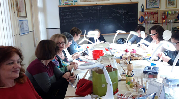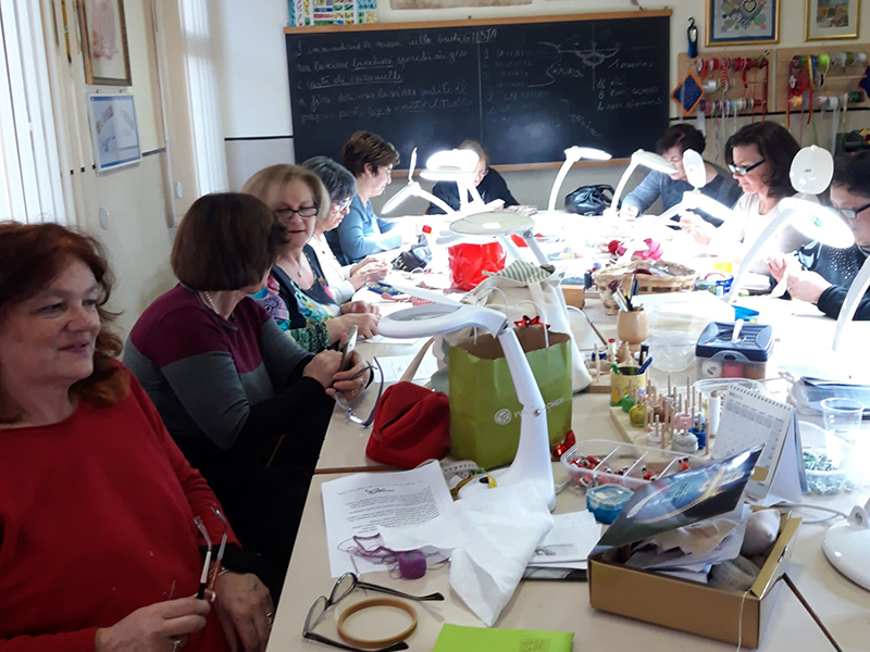 La scuola è aperta tre giorni a settimana: il lunedì vengono le più esperte, il venerdì le principianti e il mercoledì organizziamo il “giorno ricreativo”, durante il quale si svolgono lavori da destinare al mercatino di beneficenza, si imparano nuove tecniche e si fa merenda tutte insieme, ognuna porta qualcosa. Quello che si è creato è un gruppo molto affiatato, ci vediamo con piacere anche fuori dagli orari di lezione.