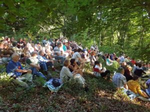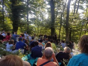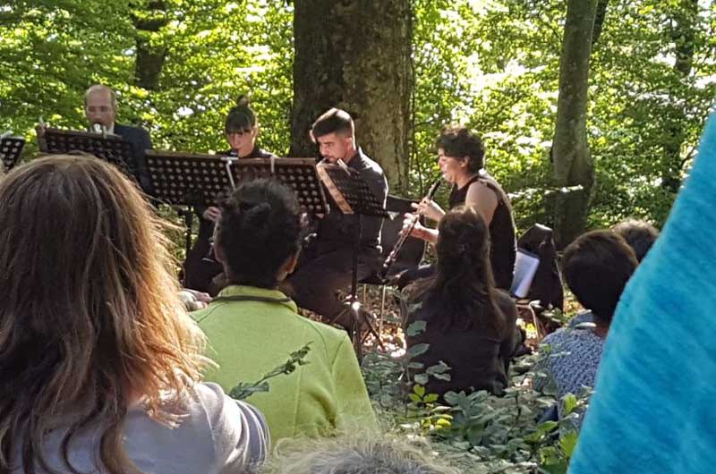 Un’emozione unica la prima domenica di agosto. Lusingare le orecchie, accarezzare il cuore, respirare en plein air con le musiche di Albinoni, Vivaldi, Respighi, Rota, Piazzolla all’ombra di faggi secolari. Un’emozione che almeno in trecento (forse di più) hanno potuto vivere poco dopo l’alba nell’oasi naturale del monte Fogliano, prospiciente il lago di Vico, per l’ormai rituale “Concerto del mattino” che si ripete ogni anno nella prima domenica di agosto. Pubblico attento ed appassionato, distribuito lungo il crinale di un suggestivo spazio, trasformato per l’occasione in un odeon naturale, attraverso le vibrazioni del quintetto Elucubrazioni Sonoresi.
