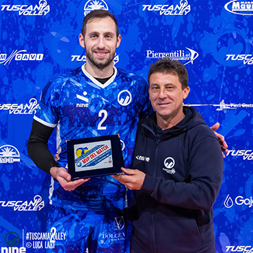 MVP: Michele Simoni premiato dal presidente del Tuscania Volley Massimo Pieri