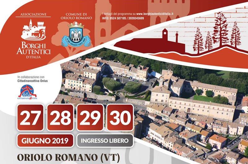 L’Associazione Borghi Autentici d’Italia  organizza il Meeting Nazionale delle Comunità dei Borghi Autentici che si svolgerà dal 27 al 30 giugno ad Oriolo Romano