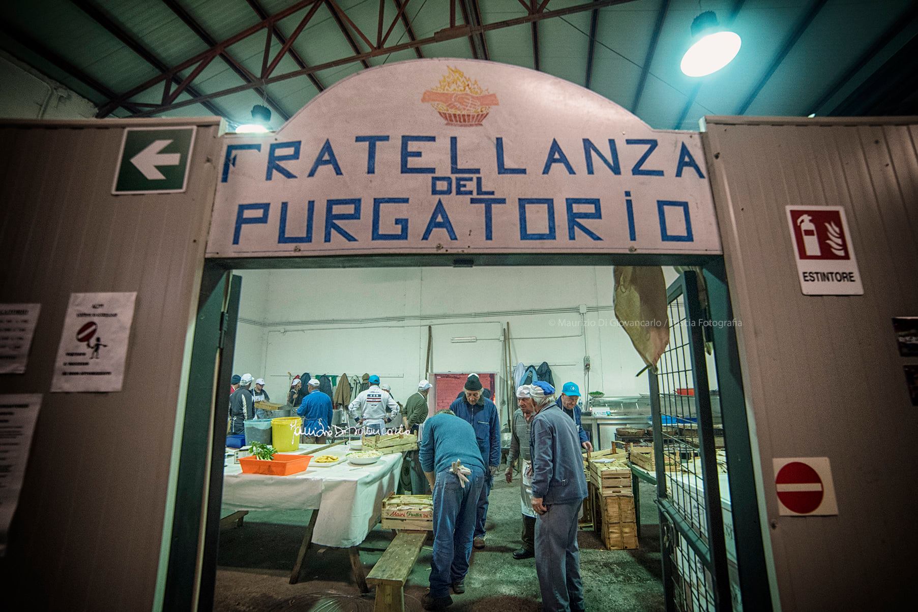 Come contorno si può attingere dai 250 chili di fagioli del territorio (detti proprio “del Purgatorio”, piccoli e bianchi, simili ai cannellini per il gusto delicato). Tutte le pietanze sono cucinate con il fuoco di cinquanta quintali di legna accesa dai fratelli fuochisti alle tre del mattino dello stesso giorno. Una particolarità? I commensali devono portarsi da casa pane e vino, requisito essenziale per godersi il lungo pranzo cucinato e servito dai confratelli – tutti rigorosamente uomini – vestiti con il tradizionale saio marrone, mantella viola, cappuccio e tamburino. la finalità del Pranzo del Purgatorio infatti è lodevole, in quanto tutto il ricavato raccolto sarà donato in beneficenza.