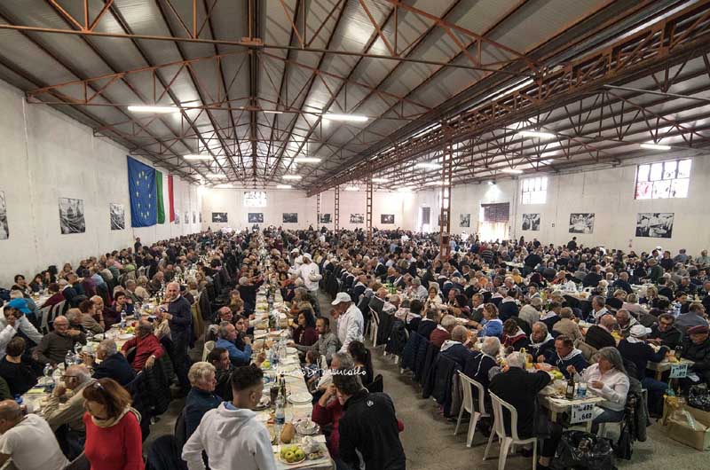 Infatti il pranzo arriva a durare svariate ore (comprensibile, dato l’elevato numero di presenti e la mole di cibo da preparare) e nella sua aderenza alla tradizione conserva le caratteristiche che richiamano la sua origine. Su tutte? Il menù è lo stesso da sempre e comprende pietanze con ingredienti tipici della zona, sia di terra sia di lago (quello di Bolsena è davvero a un passo).