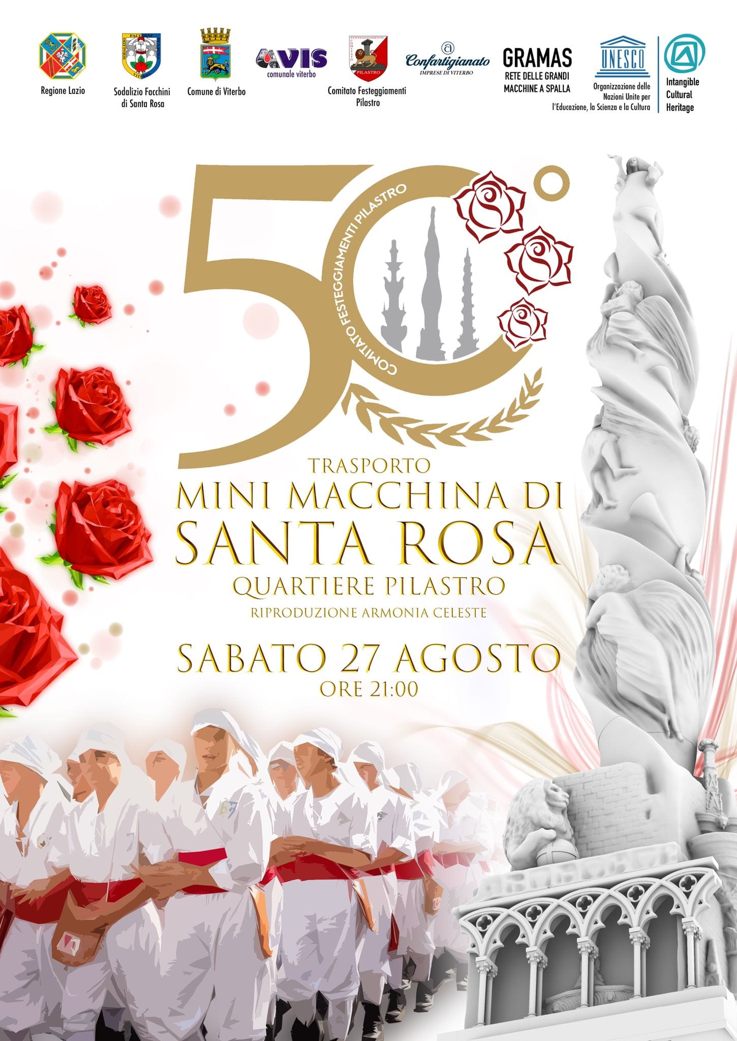 Il programma della giornata prevede alle 15.30 l’adunata dei mini-Facchini all’ingresso di viale Bruno Buozzi, di fronte al bar Le Iene, cui farà seguito la tradizionale sfilata per le vie di Viterbo fino al santuario di Santa Rosa e ritorno. “Il ‘Sollevate e fermi’ è previsto alle 21.00 saranno presenti le massime autorità civili e militari. Da quel momento prenderà ufficialmente il via il cinquantesimo trasporto della mini-Macchina del Pilastro.