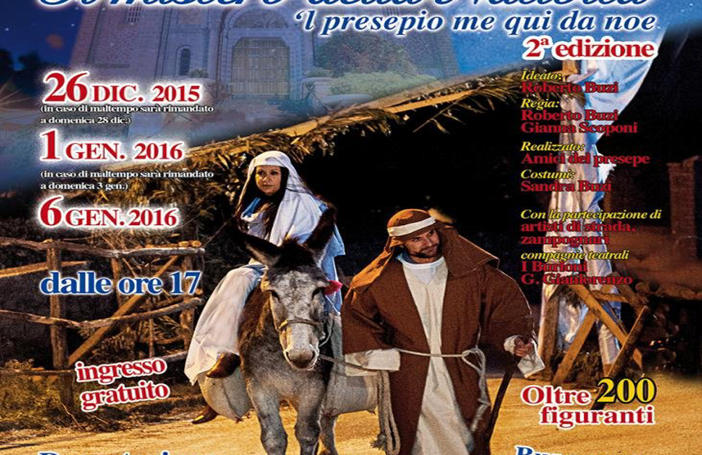 Seguendo il percorso che accompagnerà alla Natività, si potrà assistere a scene di vita reale. Sarà creato un forno dove verrà fatto cuocere il pane, ricostruita una macina per la farina e anche la grotta dove arriverà il “bambinello”. Animali, attrezzi, vestiti, tutto come una volta e le compagnie teatrali, che uniranno le tradizioni locali alla vicenda storica della nascita di Cristo, facendo immergere lo spettatore, nello spirito del tempo, con dialoghi e battute. La rappresentazione inizierà con l’arrivo di Maria e Giuseppe in groppa all’asinello nella piazza principale, si snoderà poi lungo le vie circostanti dove si incontreranno il castello di Erode, il banco del censimento, il bazar delle botteghe artigianali, dove si potranno gustare i prodotti tipici ad iniziare dal pane, dalla ricotta e dal formaggio preparati in loco, dai fornai e dai pastori, per poi culminare nella grotta della natività. Tutti luoghi appositamente realizzati o ricavati per l’occasione. Un progetto di grande valore, che oltre ad esaltare il significato spirituale del Natale permetterà di dare vita ad un evento turistico ricco di particolari ed inedite suggestioni.