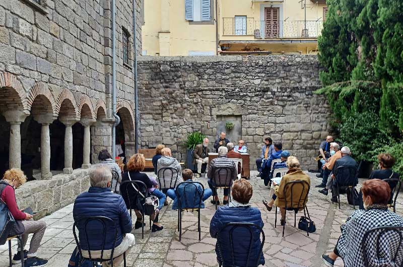 Ve detto. Vitorchiano potrebbe fare di più per inserire il Moai (realizzato sul posto nel 1990 da alcuni abitanti dell’Isola di Pasqua) nel piano di marketing turistico del borgo che vanta, tra l’altro, l’asterisco di “Bandiera arancione” del Touring Club. E’ quanto emerso venerdì scorso nel chiostro longobardo di Santa Maria Nuova a Viterbo a margine di un vivace incontro guidato con garbo da Giuseppe Rescifina per la presentazione del romanzo “Il mistero del Moai” di Raffaele D’Orazi (Serena Edizioni) sostenuto da Amerigo Bazzoffia e Silvia Somigli. In apertura il console del Touring Vincenzo Ceniti – autore peraltro di un articolo sul Moai con foto di Sergio Galeotti apparso sulla rivista di giugno del Tci – ha ricordato le vicende della sua realizzazione in gran parte dovuta a Renzo Anselmi, titolare dell’omonima cava, che in quegli anni mise a disposizione il blocco di peperino e i suoi impianti.