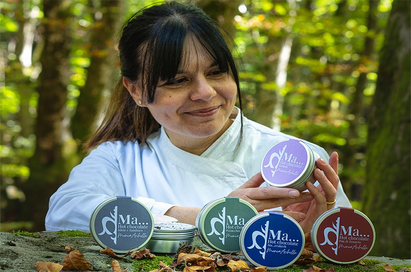 Ecco come la protagonista descrive “Ma rrakech”. “Nella confezione – dice Monia Achille, che è anche docente del Gambero Rosso – è presente un vero e proprio cioccolato, non in polvere, aromatizzato e in questo caso anche vegano, insieme a un sacchetto contenente the alla menta e rose, che una volta messo in infusione viene versato sul cioccolato creando così una cioccolata calda. Come era in origine, ovvero non con il latte ma con l’acqua”.
