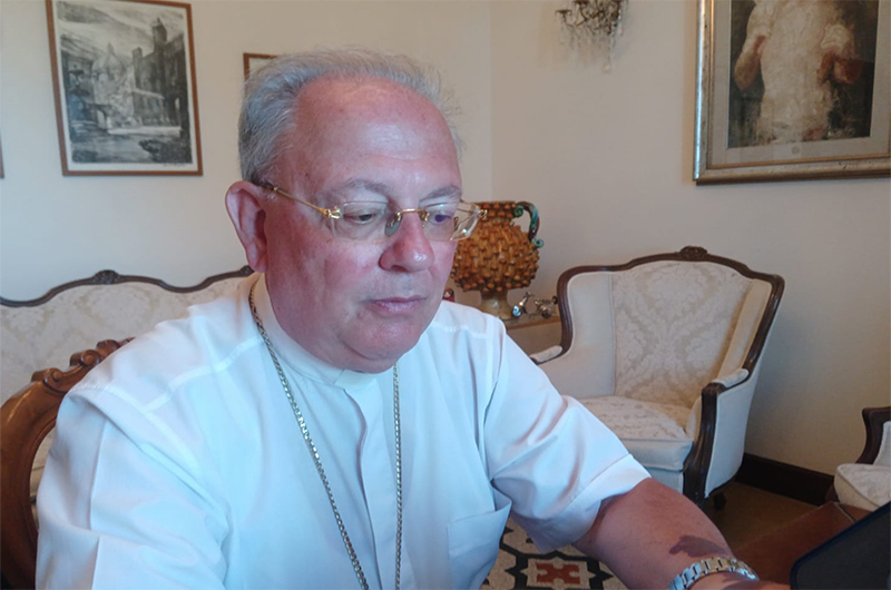Una lama candida, luccicante, che taglia i confini dell’acqua, sopra una catena di colline appena offuscate da un sole cadente che fanno da corona. La cartolina del lago di Bolsena, vista Montefiascone, non offre neppure a sufficienza l’immagine di una bellezza mozzafiato. Uno scrigno assai conosciuto dai viterbesi, meno dai turisti per caso. Di fronte a questo spettacolo si illuminano gli occhi di monsignor Fabio Fabene, arcivescovo della Diocesi. Un sereno sorriso che è la più eloquente testimonianza di un amore infinito. “Ci può essere qualcosa di più bello?”. Poco o niente, in effetti. Per l’anagrafe Fabio Fabene è nato a Roma, 66 anni fa, ma si sente montefiasconese doc. E’ lui stesso, in un colloquio di oltre un’ora, a illustrare il curriculum vitae. “Ho studiato presso il seminario minore di Montefiascone, poi in quello regionale de La Quercia. Da diacono sono stato pro cancelliere della Curia di Viterbo. Nell’84 sono stato nominato cancelliere, fino all’88. Intanto avevo iniziato a studiare diritto all’università della Santa Croce a Roma. Ho collaborato con il vescovo monsignor Tagliaferri. Dopo ho ripreso gli studi, mi sono laureato in diritto canonico, vice parroco e parroco di Zepponami fino al ’97. Dal 2014 al 2017 vescovo titolare di Acquapendente, dal 2017 al 2021 vescovo titolare di Montefiascone, dal 2021 arcivescovo. Dallo stesso anno segretario della Congregazione delle cause dei santi. Ed eccoci qua”.