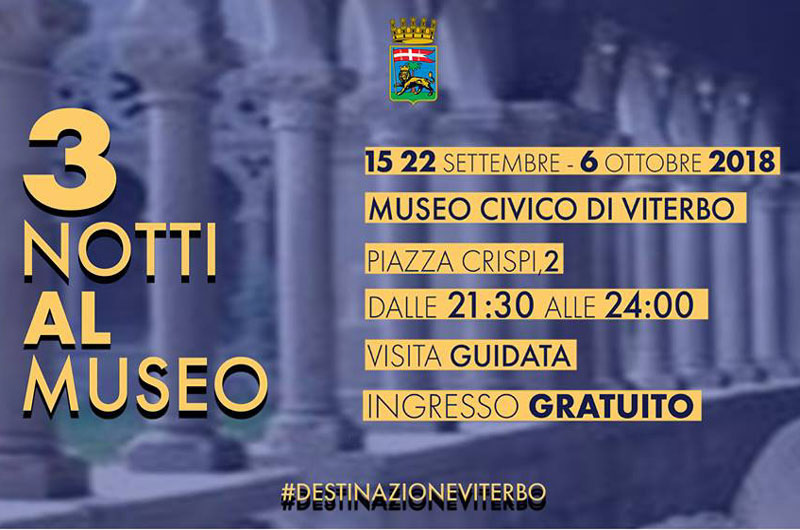 Ingresso gratuito al museo civico fino al prossimo 30 settembre. Ingresso gratuito (con visita guidata) sabato sera (22 settembre e 6 ottobre).