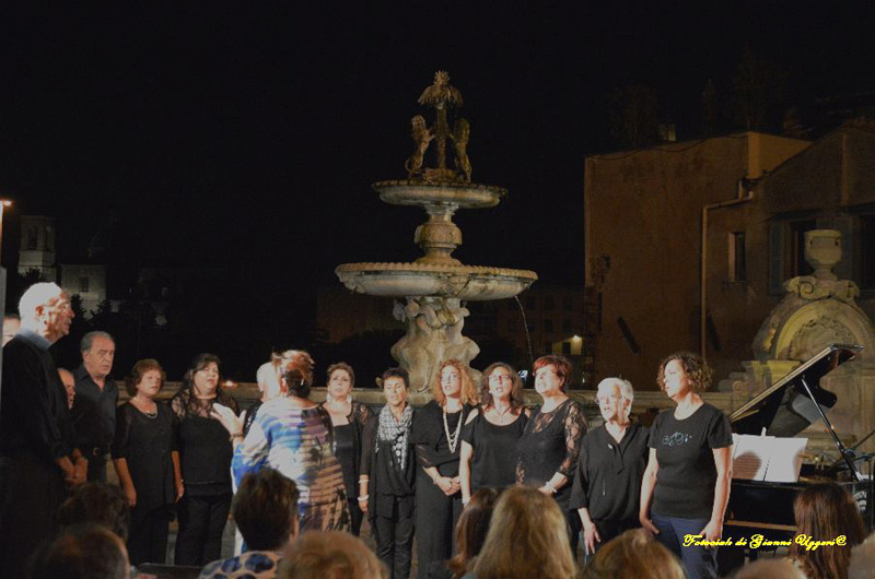 Gremito ancor più degli altri due precedenti incontri, alla presenza delle autorità della Prefettura e Comunali, il cortile  panoramico del Palazzo dei Priori, sede del Comune di Viterbo, ha ospitato lunedì 24 luglio l’ultimo dei tre concerti programmati nella rassegna Musica in Giardino a cura dell’ Associazione e Centro Studi Cesare Dobici in collaborazione con il l Comune di Viterbo. Iniziata alle 21.15, davanti al sommesso, piacevole rumoreggiare della fantastica fontana del Giardino, la serata ha avuto come protagonisti tre musicisti conosciutissimi al pubblico viterbese: Liana Panarella, versatile soprano dalla voce di solida statura , Wanda Folliero, violinista estremamente elegante ed espressiva, Ferdinando Bastianini che ha trasformato la tastiera del pianoforte in un’ orchestra con sorprese timbriche inaspettate. Un repertorio non facile, se non altro per la scelta stilistica assolutamente eterogenea: dall’opera divertente e giocosa di un mozartiano “Porgi Amor” e dalle maliziose vibrazioni del celebre “O mio babbino caro” di Puccini alle atmosfere più intime di un “Summertime” e “La Vie en Rose” cantati con sereno approccio stilistico nei confronti di un ambito tanto lontano da melodrammatici lirismi. Piacevoli i brani delle operette di un sempre gradito Lehar e grandiosa la gamma coloristica che ha vestito il repertorio napoletano. Sussurrata la Vergine degli Angeli di Verdi, davvero preghiera di mistico spessore. Ascoltatori rapiti e amichevolmente partecipi all’atmosfera festosa di questo ultimo concerto. Numerosi bis e fuori programma. Un plauso alle voci recitanti Veronica Carrubba, Sara Iannoni e Giusi Rumori che, sul tappeto proposto dalle improvvisazioni pianistiche del Bastianini, hanno parlato della forza suggestiva della musica, della gioia di saper ascoltare il silenzio, del misterioso gioco di assaporare i suoni della natura. Uno spettacolo nell’insieme interessante ed appagante, coronamento di una Rassegna voluta e sapientemente gestita da Loredana Serafini che, oltre ad aver curato la realizzazione artistica dei tre concerti, si è esibita lunedì dirigendo la sua Corale Polifonica S.Giovanni, lasciando senza respiro il pubblico con la carezzevole atmosfera dell’Ave Maria del Monte Grappa del compositore viterbese Cesare Dobici.