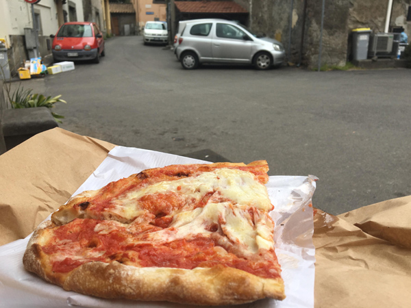 To add to the list of great day trips from Viterbo, I have to mention the lovely town of La Quercia. La Quercia is a small town, about ten minutes from the center of Viterbo on the way to Bagnaia, and has many hidden gems to discover. Upon arriving I first visited the basilica in the middle of town. Even compared to all the beautiful churches in Italy, this one was very impressive. With a simple design on the outside, the artwork inside amazes with its golden sculpted ceiling and paintings on the walls. The atmosphere is peaceful, quiet and beautiful inside as there were not many visitors when I went. It is nice to see such a beautiful church in such a small town. Next, I went to the Guido Biscetta bakery, a little building serving pizza and various baked goods. I was told that this place had incredible pizza, so of course I had to try some. It was excellent, a lot thicker and more filling than most of the pizza I’ve had in Viterbo. I definitely think it is worth the trip to try some. Also to it’s credit, La Quercia has some great views and scenery surrounding it. I chose to walk there from Viterbo instead of take the bus, and the walk leading into town has some lovely views of the countryside. If you can, I would recommend walking to La Quercia. Making the trip in general is for sure, worth it. I will definitely be returning soon.