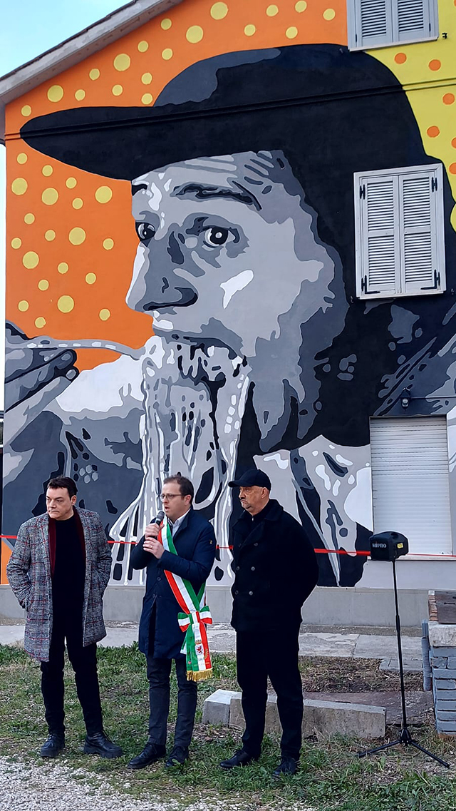 “Il progetto di riqualificazione urbana con il Comune di Narni e la manifestazione ‘Narni, le vie del cinema’ – spiega David Pompili – nasce qualche anno fa con la prima opera urbana all’ingresso del parco Bruno Donatelli dove sono andato a fare il primo volto del cinema che è quello di Pier Paolo Pasolini. Poi, in stretta collaborazione con ‘Le vie del cinema’ e con Mirella Pioli della segreteria organizzativa della rassegna, si è pensato di realizzare un percorso turistico con cui si va a creare una sorta di museo a cielo aperto dove le opere, le immagini iconiche del cinema italiano, decorano lo spazio urbano di Narni Scalo. Si riprende così il percorso de ‘Le vie del cinema’ di questi anni”.