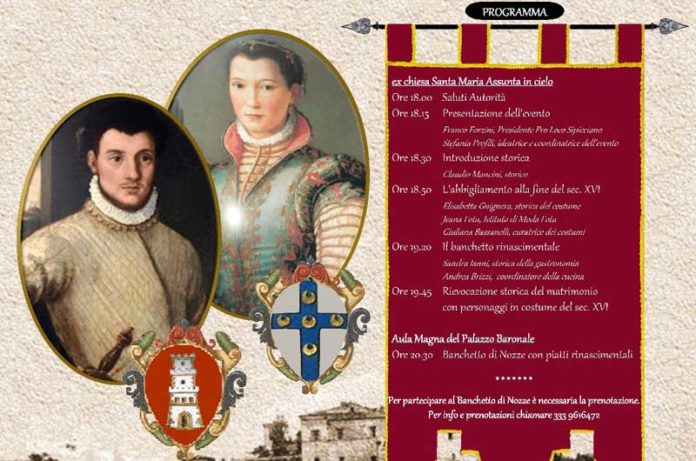 Nata sotto l’egida della Pro Loco di Sipicciano (VT), da una idea di Stefania Profili, coordinatrice dell’evento, sulla base delle ricerche storiche di Claudio Mancini, la rievocazione storica delle nozze, prevista per sabato 31 agosto nel borgo di Sipicciano, vede una prima edizione all’insegna della divulgazione storica di alto profilo, accompagnata dalla valorizzazione della antica tradizione enogastronomica locale.