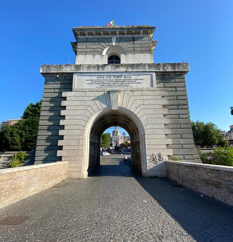 Nella foto è immortalato ponte Milvio dall’imbocco settentrionale.