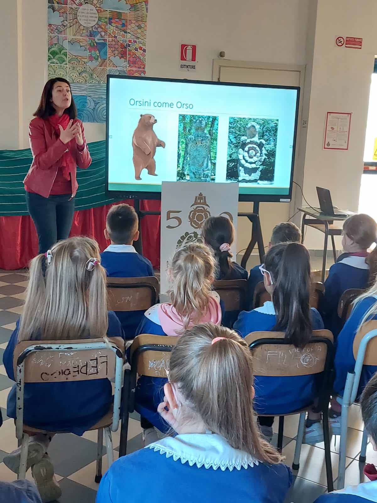 Gli stemmi delle famiglie Orsini e Farnese, il matrimonio tra Vicino e l’amata Giulia, la storia di Palazzo Orsini sono alcuni degli argomenti sui quali la professoressa Haydee Palanca, docente di Storia dell’Arte, ha coinvolto gli alunni delle cinque classi della scuola primaria in questo primo appuntamento. Una lezione basata su narrazione e immagini.La professoressa Palanca al termine dell’incontro ha commentato così questa esperienza: “E’ stato molto emozionante. I bambini hanno accolto questo intervento didattico con entusiasmo e partecipazione. Tutti sono voluti intervenire con domande e per raccontare quello che già sapevano di Vicino Orsini e potevano condividere”.